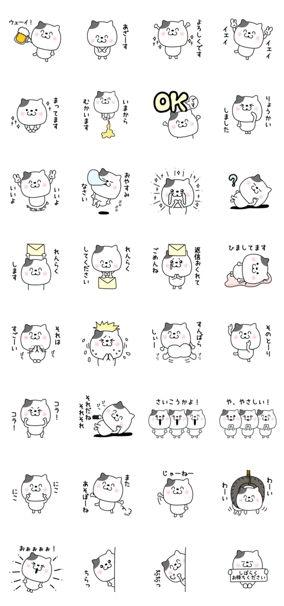 いーつもニコニコしている猫ちゃんです。トークの合間にどうぞ。絵文字もあります。