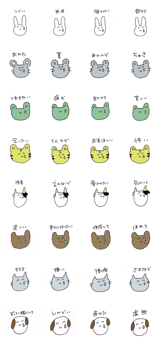 | スタンプ説明 | 本音なんて隠さないで言っちゃえば。って彼らはきっと言ってます。 素直に言っちゃいましょう。 |