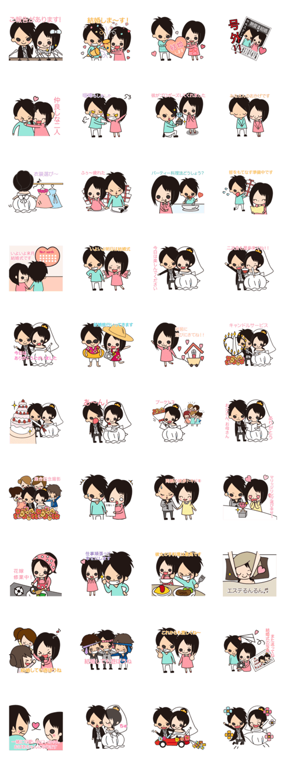 | スタンプ説明 | らぶらぶカップルが結婚式に向けた幸せスタンプです♡婚礼の告知等へどうぞ♬ |