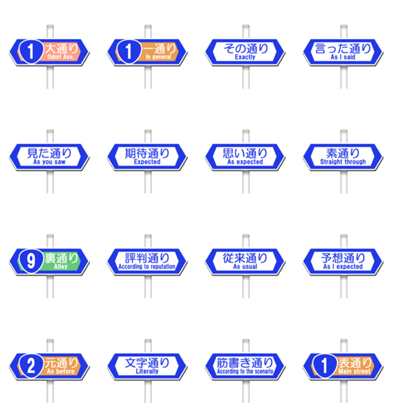 日本の大通りにある道しるべをアレンジしました。日本語と英語で表記しています。