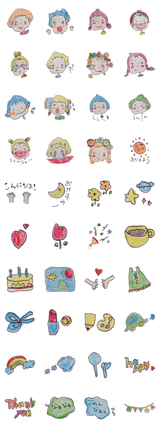 心こもった手描きスタンプです。かわいい女の子をたくさん描いてみました。