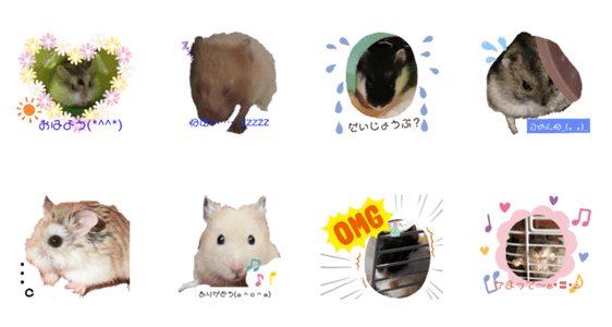 キンクマハムスター・ジャンガリアンハムスター・ロボロフスキーハムスターの癒しスタンプです。