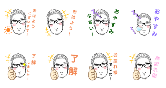 - スタンプ オールバックヒゲメガネ あいさつ