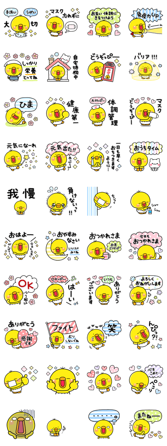 皆様に元気を届けられるようなやさしい気遣いスタンプ(ひよこのぴっぴver)を作成致しました。【作:いしいともこ】