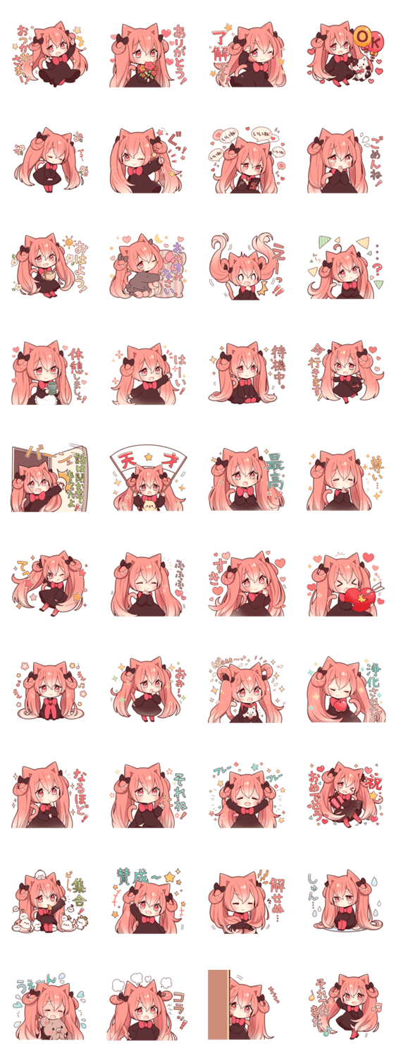 桃色の髪の猫少女のスタンプです。毎日使えるリアクションや挨拶が沢山入っています。
