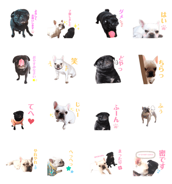 フレンチブルと黒パグ2 -LINEスタンプマニア