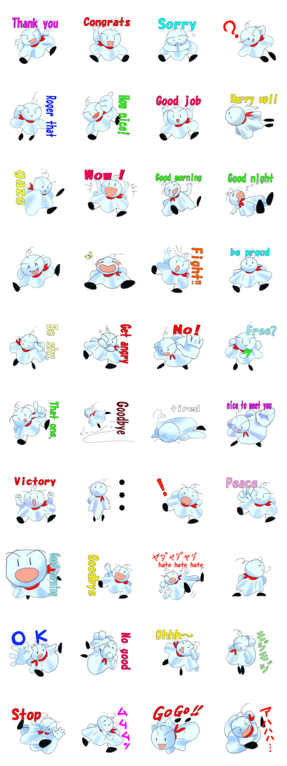 白ネコのあいうえお・・・ってるスタンプ