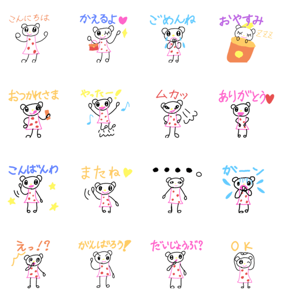 | スタンプ説明 | くまの女の子「くまみ」のスタンプです。日常生活に使えます。 |