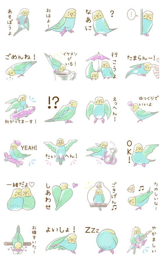 セキセイインコのとみ君の自由きままな日常を描いたかわいいスタンプです☆