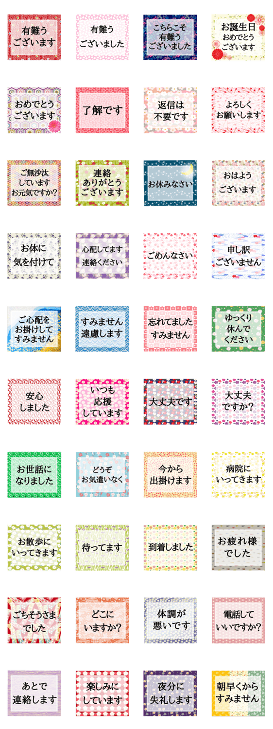 ◆丁寧な日常会話を千代紙のスタンプで♪ 大きめの文字で読みやすく、シニア世代にもお勧めです。