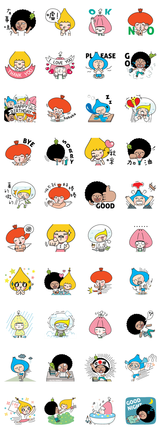 | スタンプ説明 | Here come the cutest Elite Family members: Mary, John, GG, Bubble, Henry, Wow and more. Let them bring humor and fun to your social interactions. |
