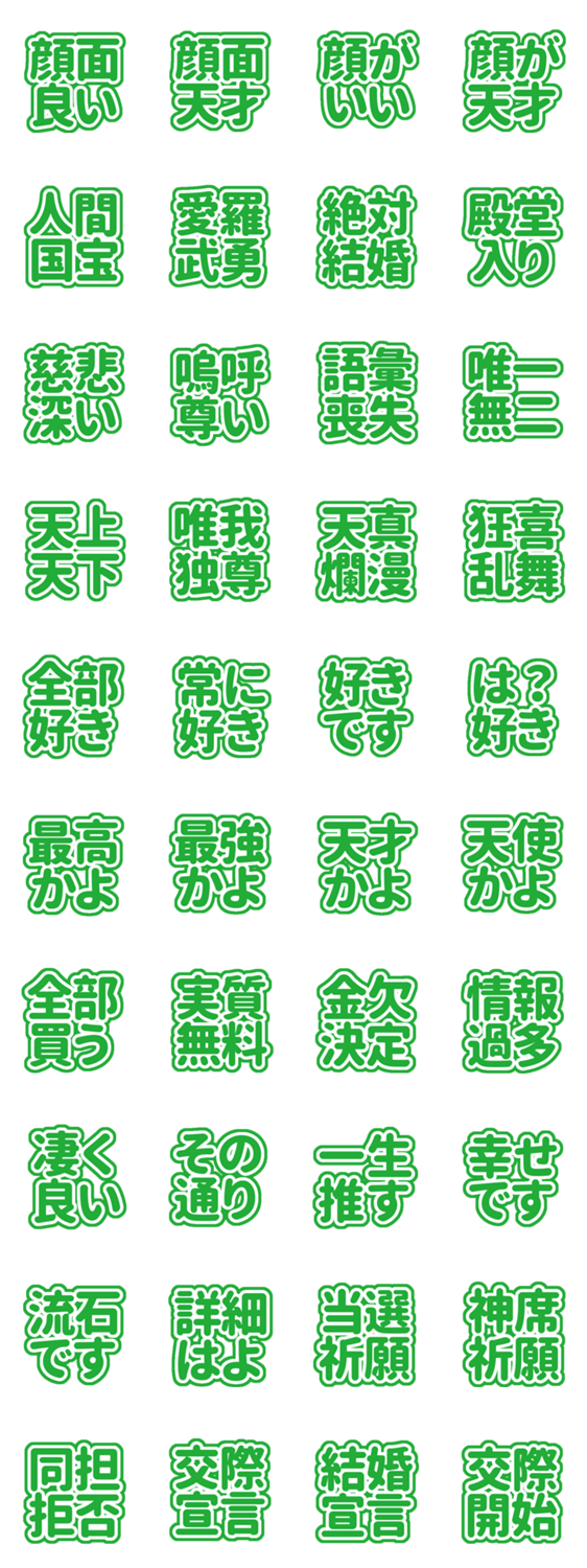 自担/担当/カラー/アイドル/オタク/ライブ/ペンライト/量産型/ぽたく/挨拶/シンプル/可愛い/天才/天使/結婚/交際/顔面/顔がいい/四字熟語/好き/殿堂入り/当選祈願/愛羅武勇