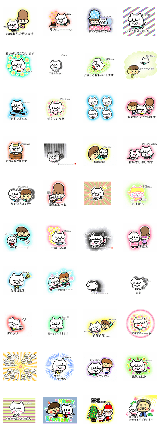 白ネコのあいうえお・・・ってるスタンプ