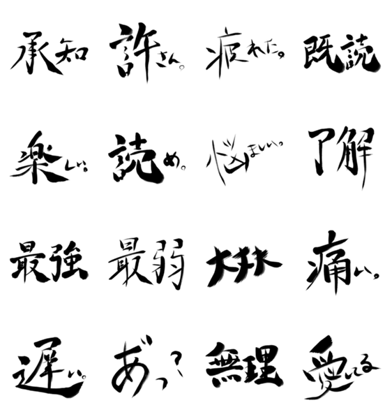 誰でも使える書道スタンプです。日常スタンプとしてお使いください。 他に【上司専用】・【父専用】・【母専用】・【娘専用】・【息子専用】などもございます!