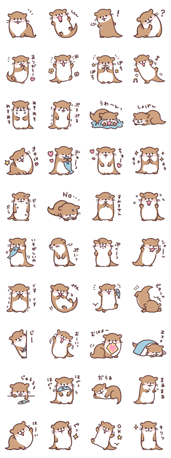 カワウソのかわいさ溢れる表情いっぱいのスタンプです☆ カワウソを飼いたいけど無理って方もカワウソに似ている方もぜひ。 もっとカワウソを愛でていきましょう!