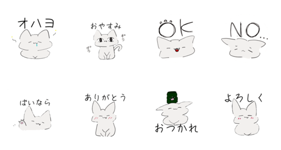 白いねこさんのシンプルなスタンプです。初めて作ったので下手くそです。文字の周りが少しギザギザしているのはご了承ください。