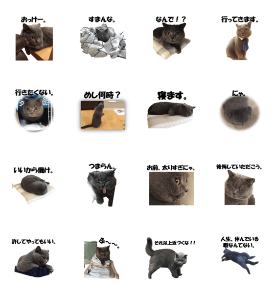 ブリティッシュショートヘアの猫(池袋在住)、なおきの日常をもとにしたスタンプです。