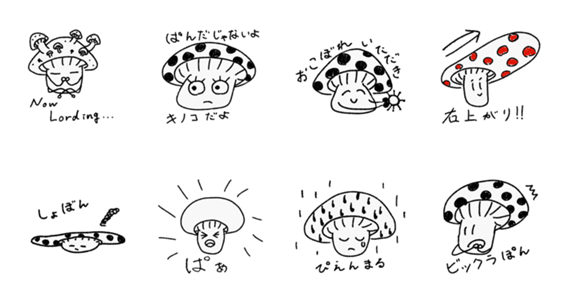 LINE Creators Studioでつくったスタンプです。さまざまなキノコにあふれています。