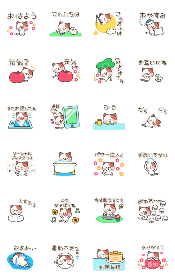 シンプルで使いやすいぶち猫さんのアニメーションスタンプです。コロナの呼びかけにも!