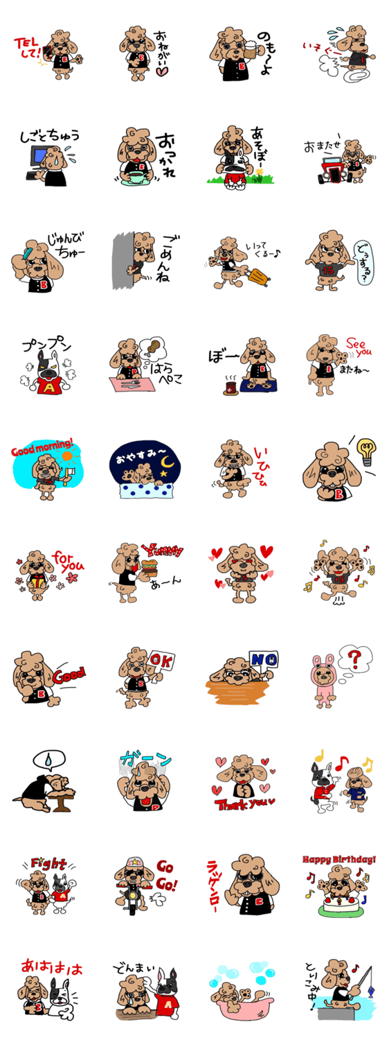 | スタンプ説明 | ワンコたちのちょっとロックな日常使えるスタンプ。 |