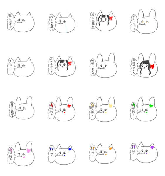 ふわふわした見た目で可愛いねこちゃんとうさちゃんが貴方の気持ちを代弁してくれます!どの界隈でも使えるとおもいます。