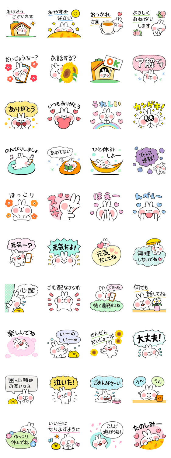 あまえんぼうさちゃんの、やさしいメッセージスタンプです。 思いやりや気遣いもできるんですね。