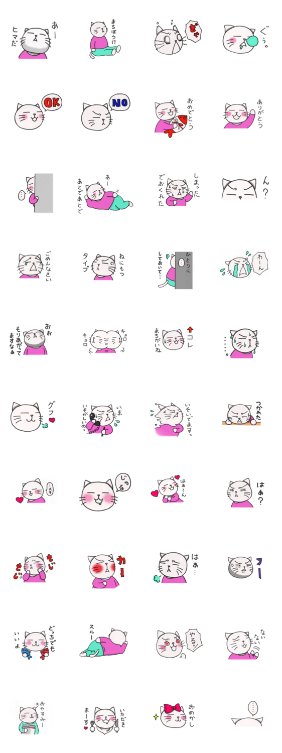 白ネコのあいうえお・・・ってるスタンプ