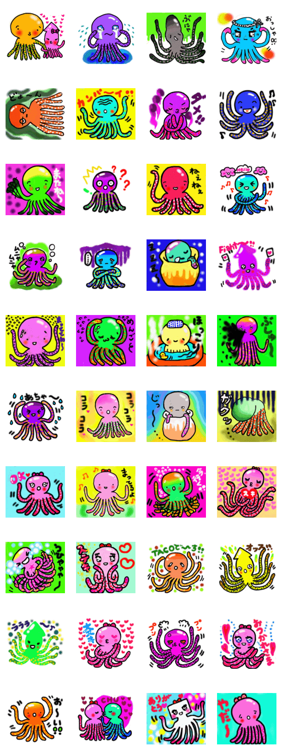 カラフルなタコポンとイカポンで、日常のメールを楽しんでください。