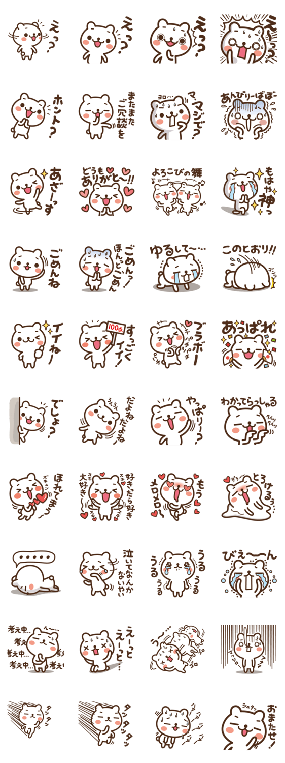 徐々にテンションを上げながら、思いを伝えるクマのスタンプ。1個だけで使っても、4個連続で畳み掛けるように使ってもOK!使い方はあなた次第♪