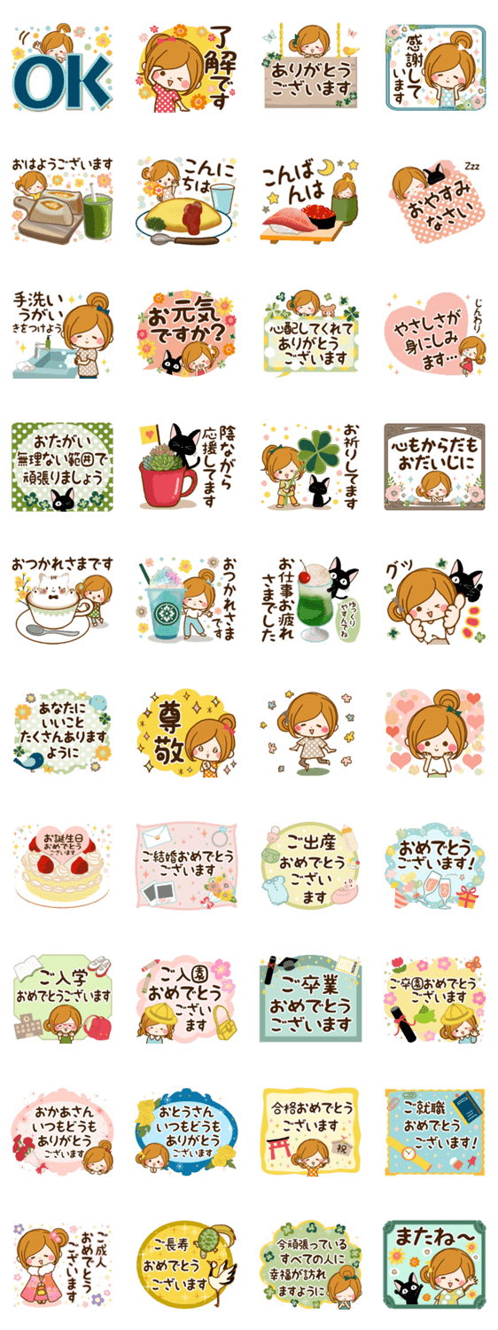やさしい色合いの「応援」と「お祝い」の言葉がたくさんつまったスタンプです。ほんわか心が癒されますように。「ほのぼのカノジョ」シリーズ
