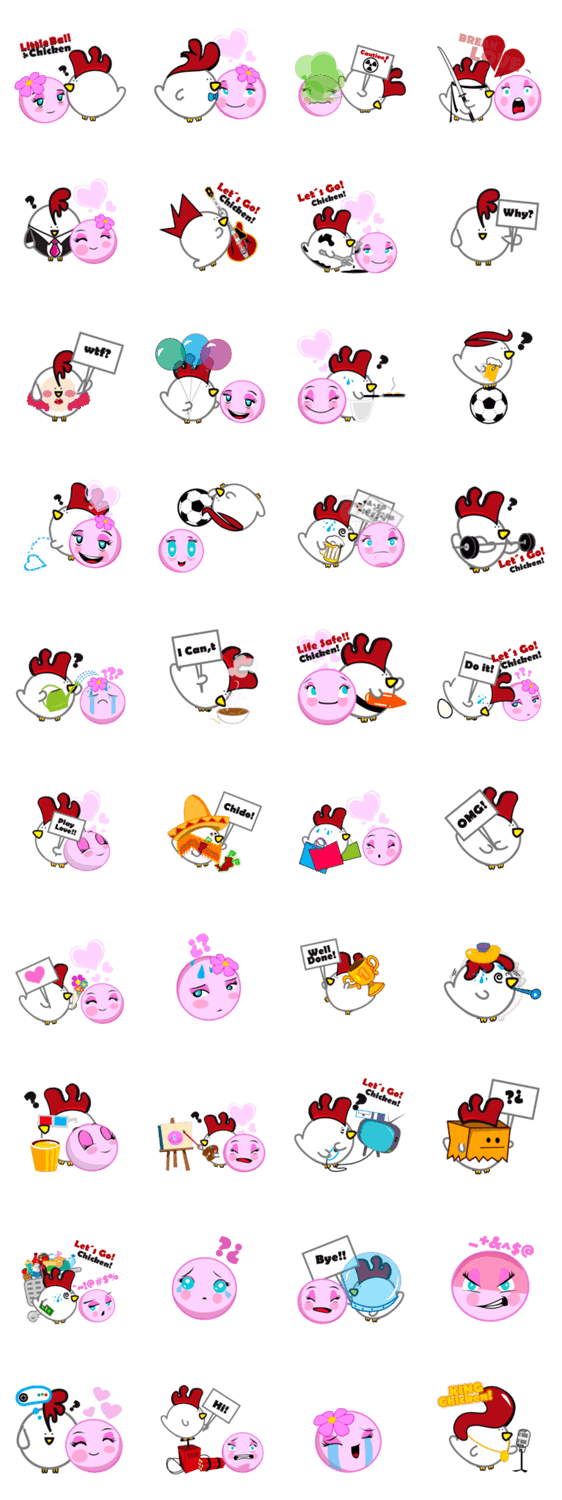 | スタンプ説明 | Little Ball & Chicken! Love History about a wonderfull couple. |