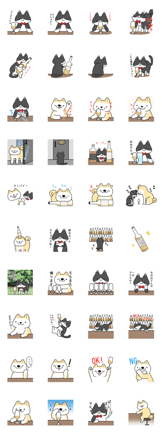秋田犬と猫のバーごっこ -LINEスタンプマニア
