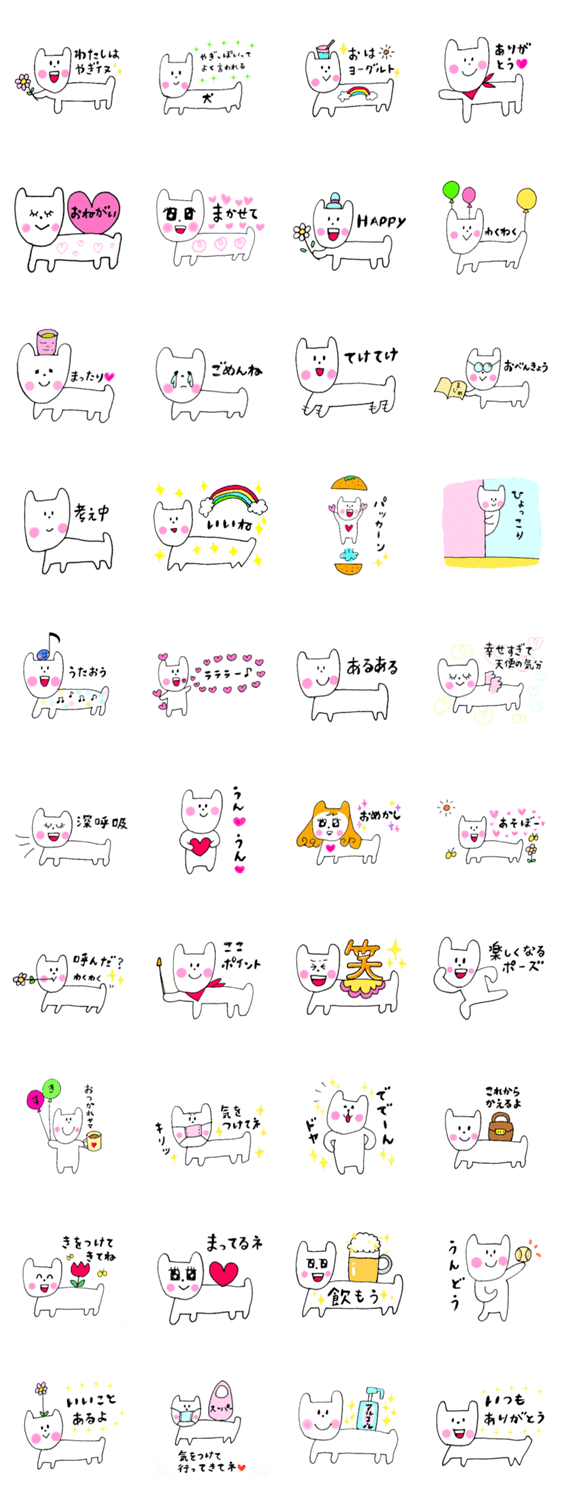 ヤギみたいなわんこの幸せスタンプ。元気いっぱいわくわくいっぱい、今日もみんなのラインを駆けめぐります。スタンプ押した人もスタンプもらった人も幸せがあふれちゃう。