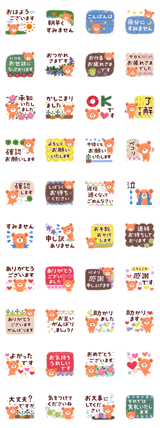 | スタンプ説明 | ゆるい敬語と丁寧な言葉が多めなので、お仕事でバンバン使っていただきたいスタンプです。 |