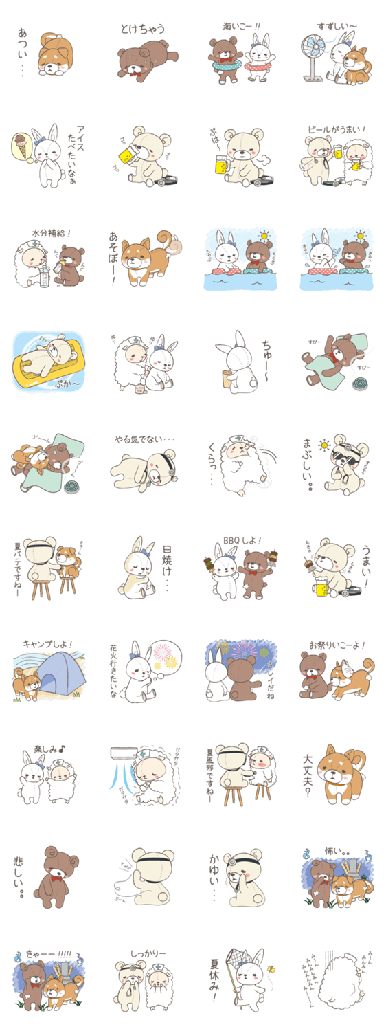 ぬいぐるみクリニック第2弾! 夏に使えるスタンプです。