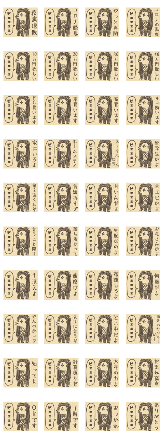 疫病退散にご利益がある予言獣です。自粛解除・給付金・第2波・テレワーク・ステイホーム・オンライン飲み会・休校&休業・世界中のコロナ終息をアマビエ様にお願いしよう