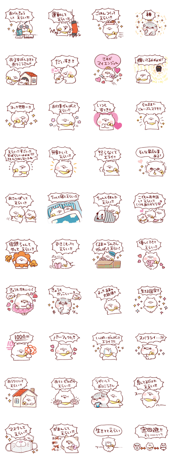 ひたすらに褒めるこどもにゃんこのスタンプ第二弾です。