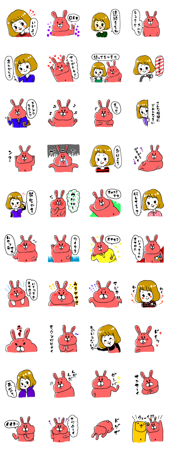 どんな関係かわからないけど、仲良しな女の子とうさぎさんのスタンプです。