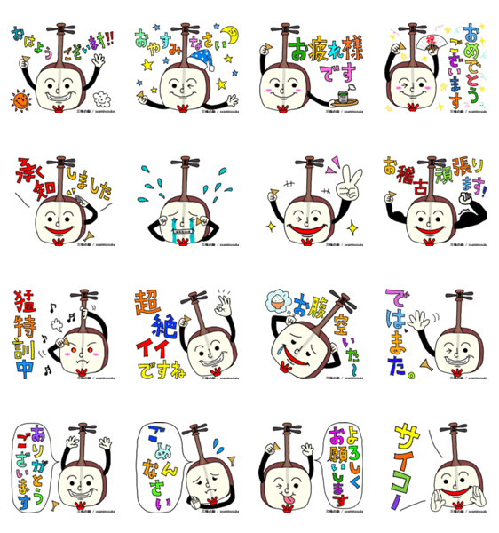 | スタンプ説明 | 津軽三味線の男の子、「三味の助」くんのスタンプです★ |