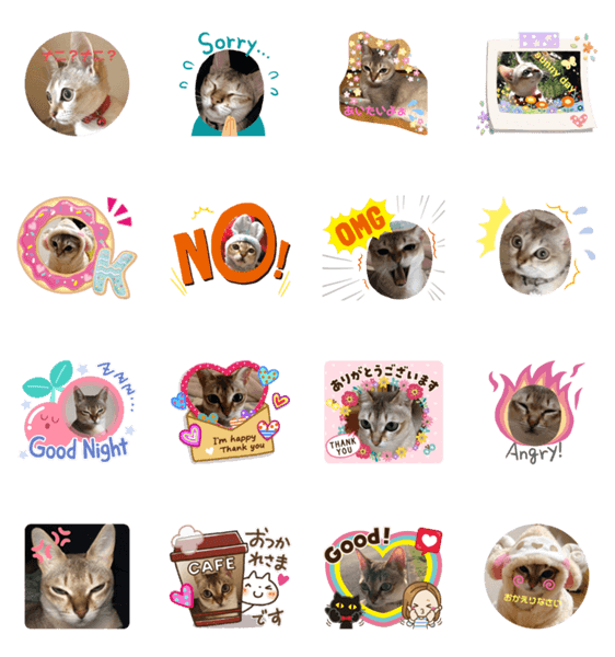 白ネコのあいうえお・・・ってるスタンプ