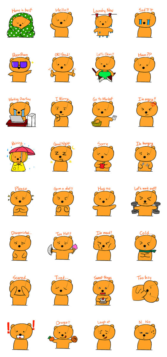 | スタンプ説明 | 私の妹が幼い時持っていた熊のぬいぐるみにインスピレーションを得ました。 我が家族のイベントにしたかったし、 親しくて可愛いキャラクターでステッカーを作ってみました |