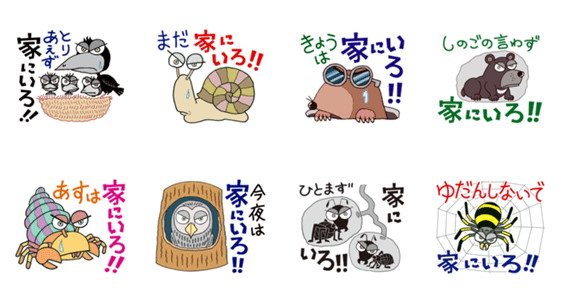 まだまだ続きそうな「ステイホーム」。気が緩みがちな方々へ、おかしな生きものたちが、それぞれの家(巣)から、ちょっと強めにメッセージを送ります。