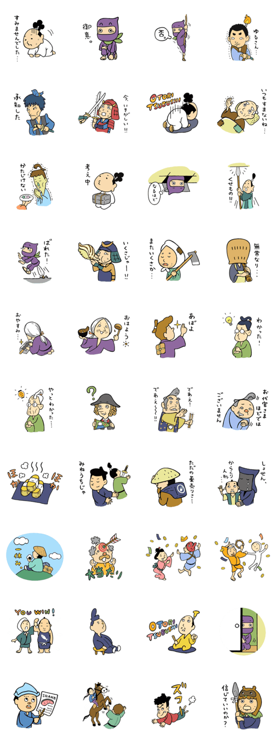 ゆかいで物悲しいお江戸キャラクターが、あなたの「ここぞ」を代弁します。横暴な君主へ、ご近所のお侍さんへ、憧れのくノ一へ…使ってみてはいかがでしょう。