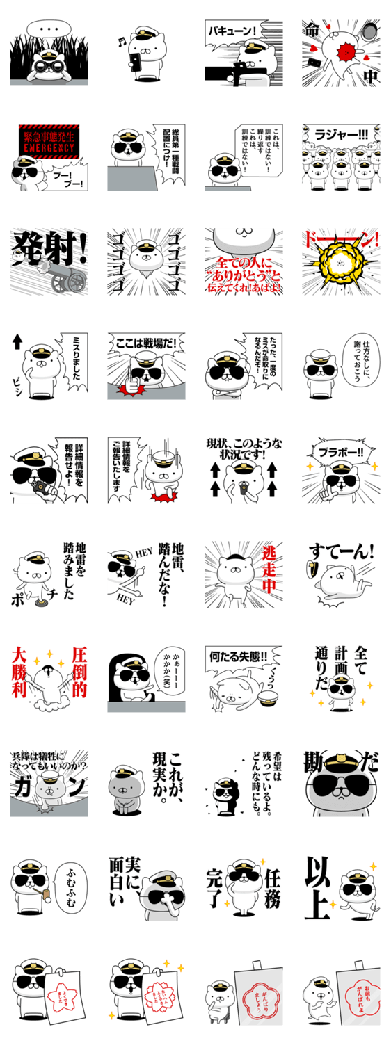 | スタンプ説明 | 軍隊/軍人/ミリタリー/空軍/海軍/陸軍/自衛隊/アーミー/戦場/戦い/サバゲー/エージェント/ミリタリー/兵隊/日常会話/挨拶/家族/恋人/友達/マリーン/ネイビー/サバゲー |