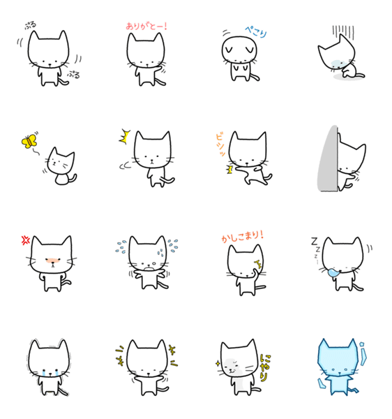 白ネコのあいうえお・・・ってるスタンプ