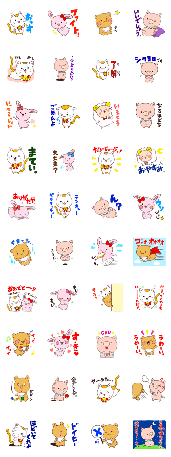 ゆるふわほのぼの系な動物たちによる、何かと使いやすいスタンプです。