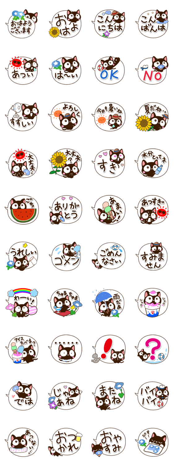 小さい黒猫スタンプ【夏・吹き出し編】 -LINEスタンプマニア
