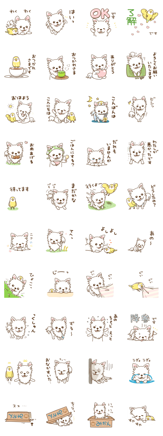 ロングコートチワワのそうじろうのスタンプです。友達のバターも、ときどき登場♪
