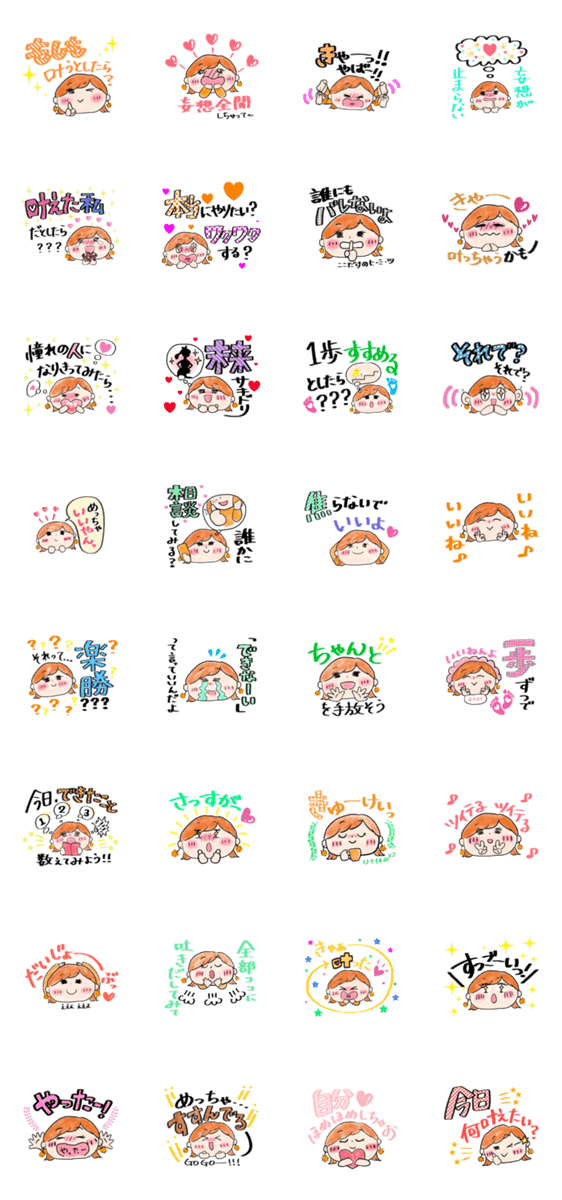 【夢を叶えたい】あなたを応援する、妄想ガールちゃん応援スタンプ。 ひとり会議がサクサク進む、見ているだけで妄想とワクワクが膨らむ、行動が加速するスタンプ大集合!