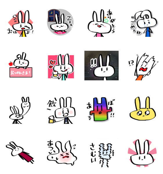形が定まらないうさぎのスタンプです。 液体になったり、固形になってみたり。